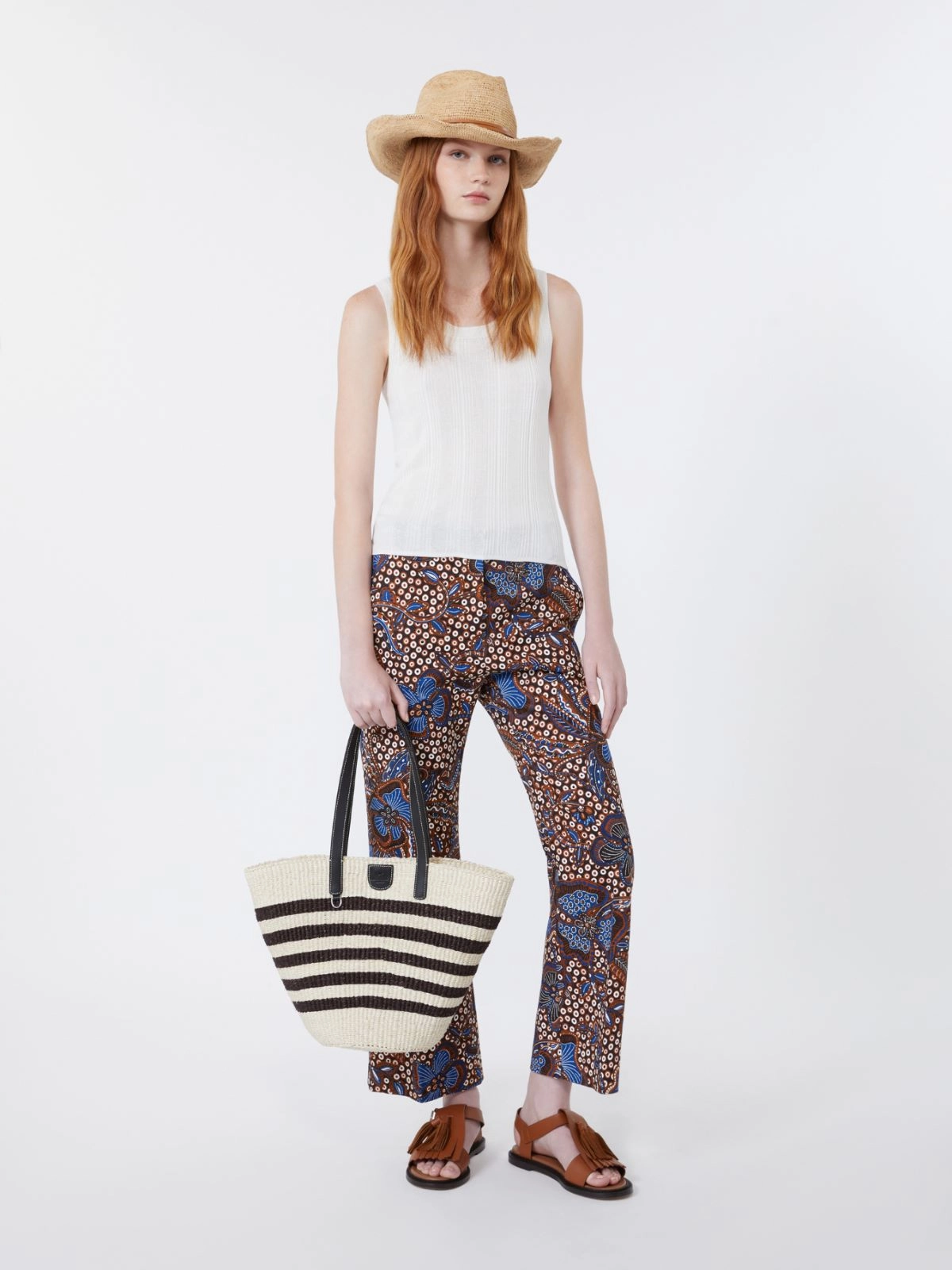 - Hose aus bedrucktem, elastischem Baumwoll-Panama-Gewebe