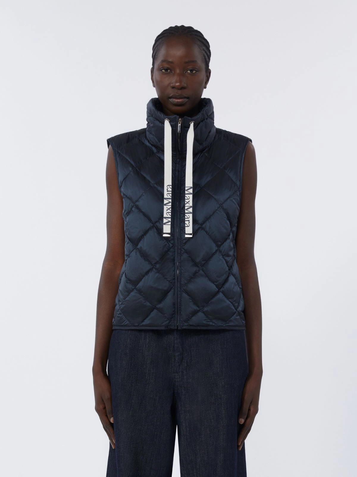 Weste mit Rauten-Steppmuster, Hochkragen mit Kordelzug und Jacquard-Logo-Bändern.